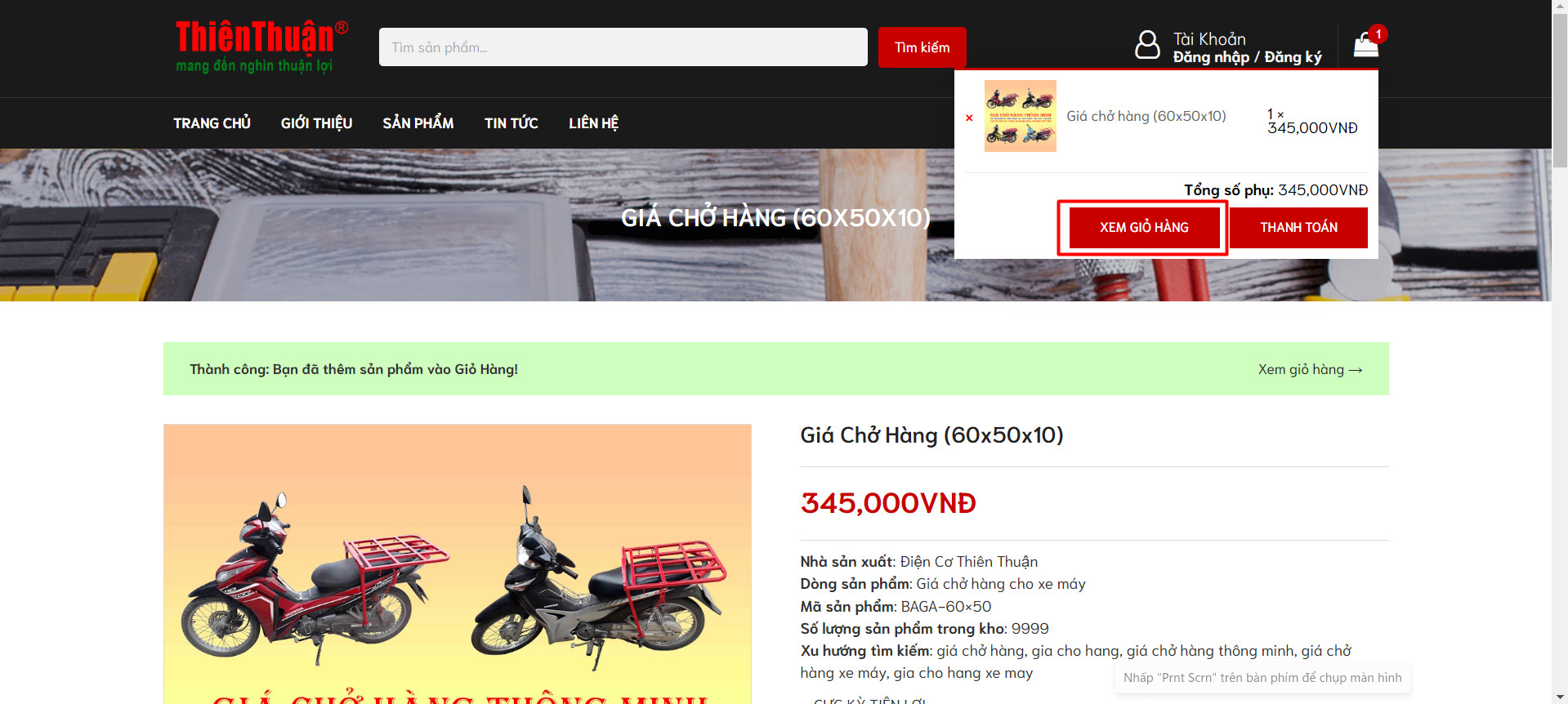 Khách hàng nhấp vào nút “Thêm vào giỏ hàng” để đưa sản phẩm cần mua vào giỏ hàng, thao tác này khách hàng có thể làm tương tự đối với các sản phẩm khác cần mua.