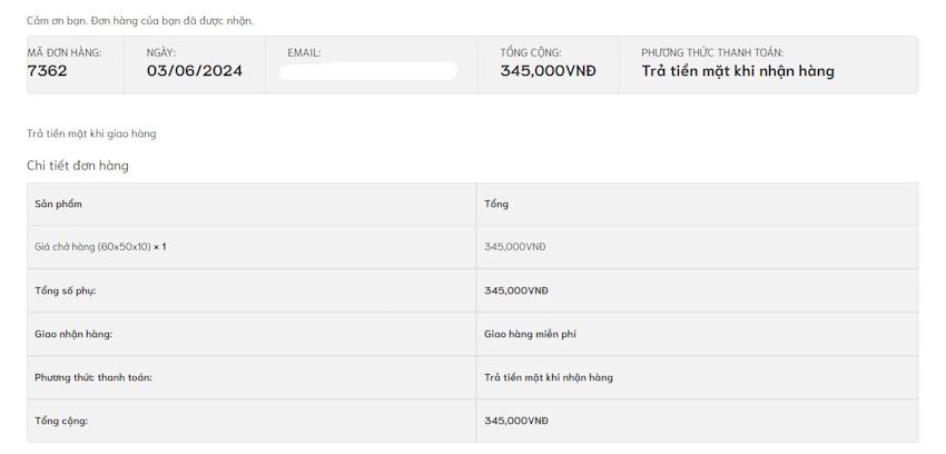 Sau khi điền đầy đủ thông tin ở bước trên hoàn tất, khách hàng sẽ nhận thông báo đơn hàng thành công.